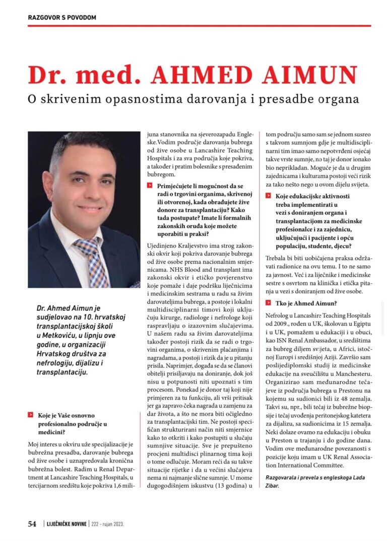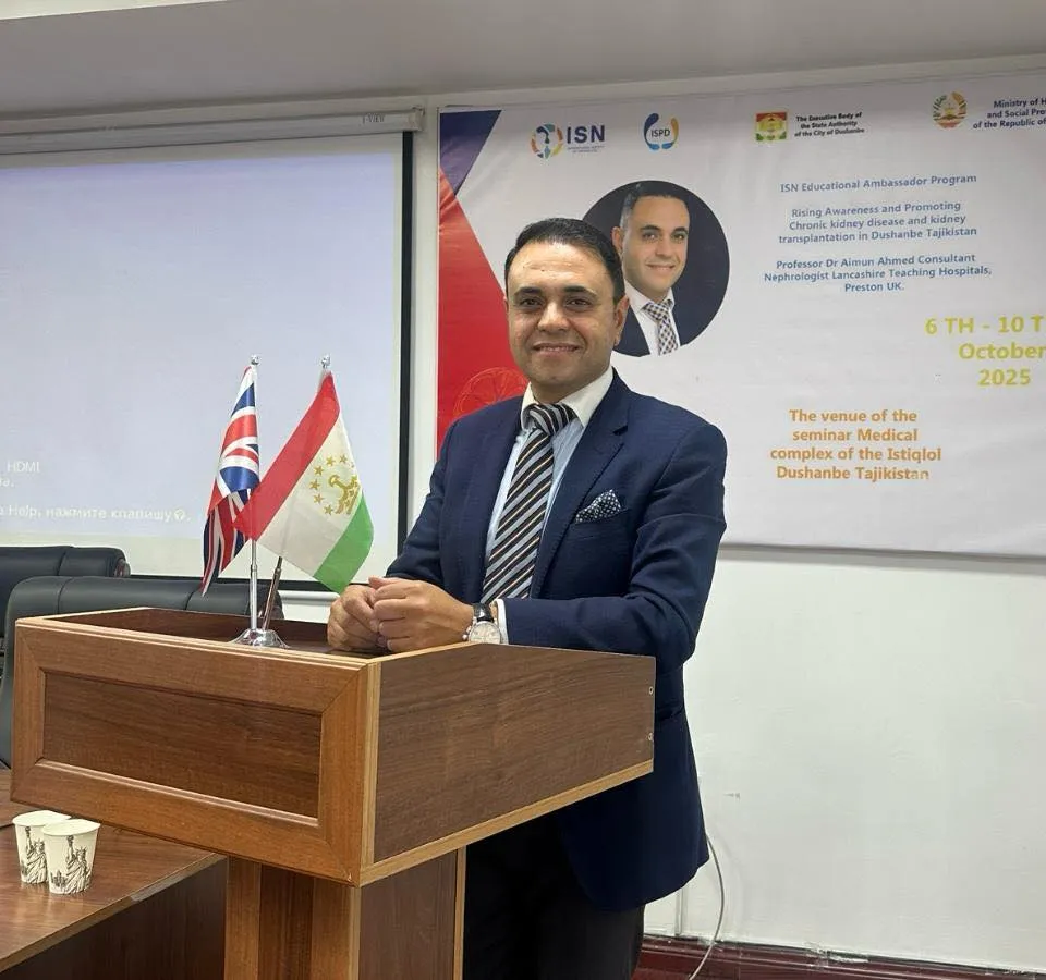 Dr. Aimun Ahmed is a kidney specialist who works as a Consultant Nephrologist at Lancashire Teaching Hospitals in the United Kingdom. He is a kidney transplantation and living kidney donor expert. He has extensive experience in managing acute and chronic kidney diseases, Haemodialysis and peritoneal dialysis expert. He also manages hypertension, autoimmune kidney disorders, and inherited renal conditions. Dr. Ahmed combines international clinical standards with patient-centred care, ensuring clear communication, accurate diagnosis, and tailored treatment plans for patients worldwide. His clinical approach is grounded in evidence-based medicine, continuous medical education, with a deep commitment to improving kidney health and quality of life worldwide.